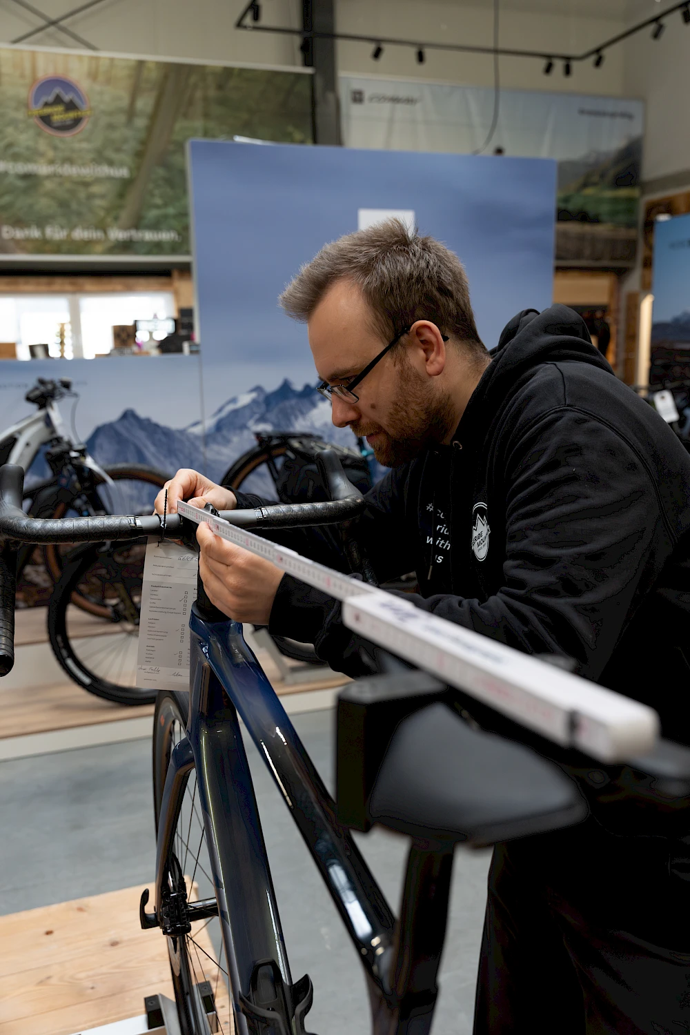 Wir erfassen acht zentrale Körpermaße. Mit Erfahrung und der Software von bikefitting.com erstellen wir daraus dein persönliches Fahrraddiagramm mit Empfehlungen zu Größe, Modell und optimaler Sitzposition.
